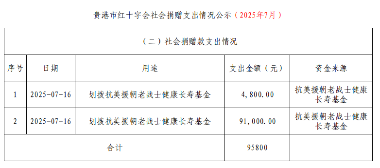 贵港市红十字会社会捐赠支出情况公示(2025年7月)